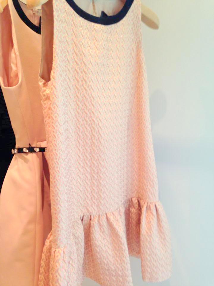 Abito PRUSSIA, color cipria, in tessuto jacquard e lurex, dalla linea svasata e con balza al fondo Vuoi acquistarlo? Clicca qui