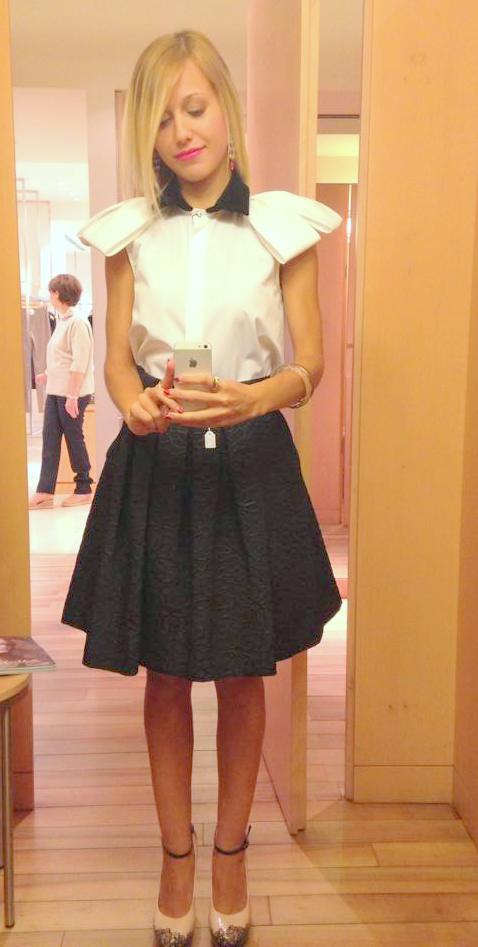 Camicia in popeline di cotone e gonna jacquard Vuoi acquistare la camicia? Clicca qui Vuoi acquistare la gonna? Clicca qui