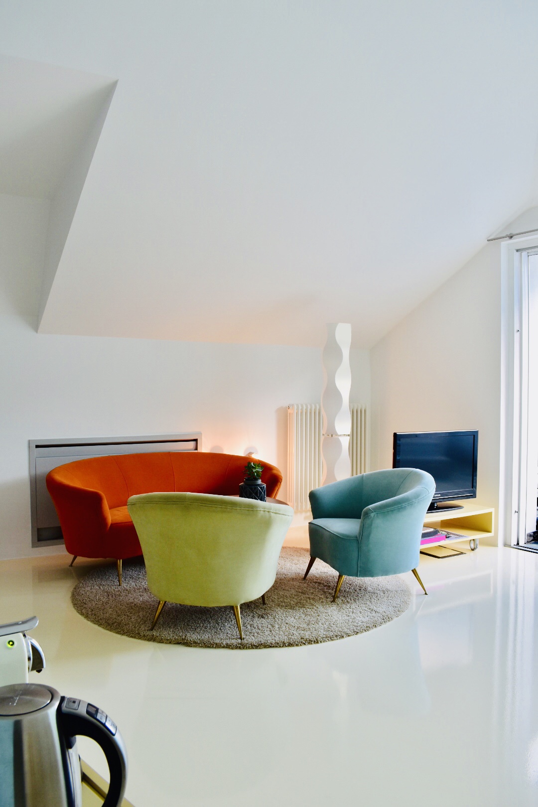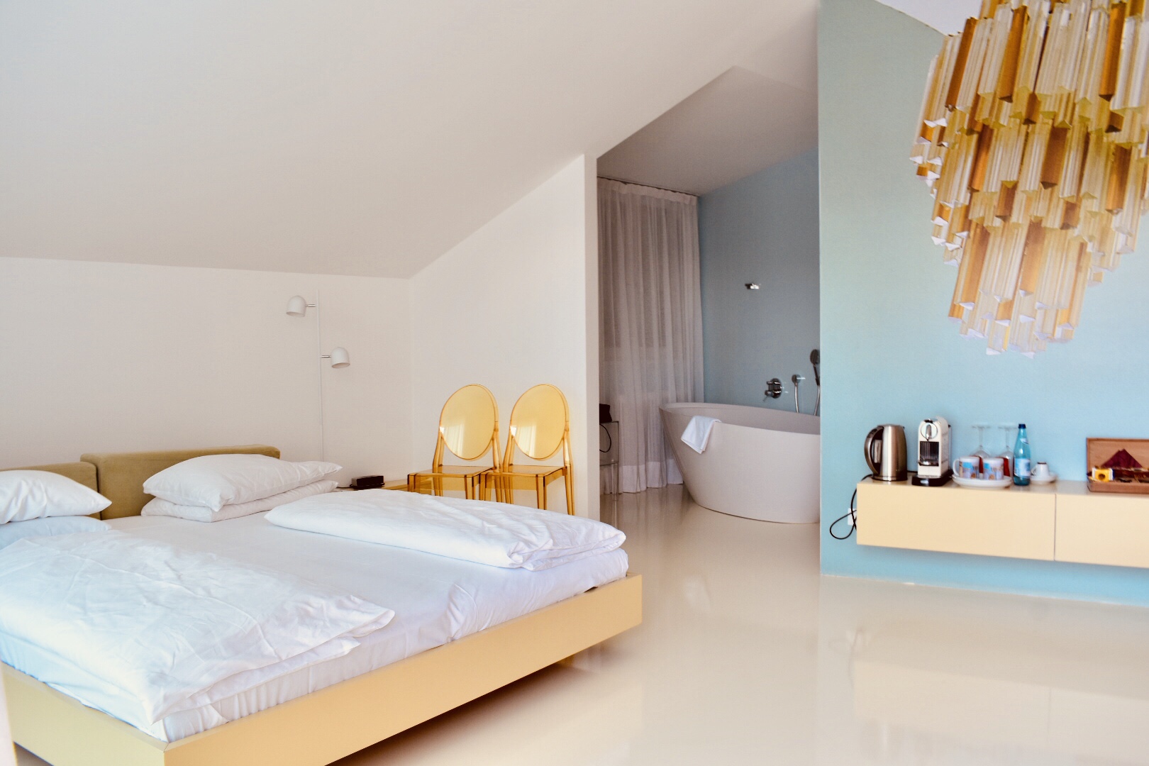 Abbiamo trascorso due notti nella luminosissima camera white screen per due, all’ultimo piano della residenza.