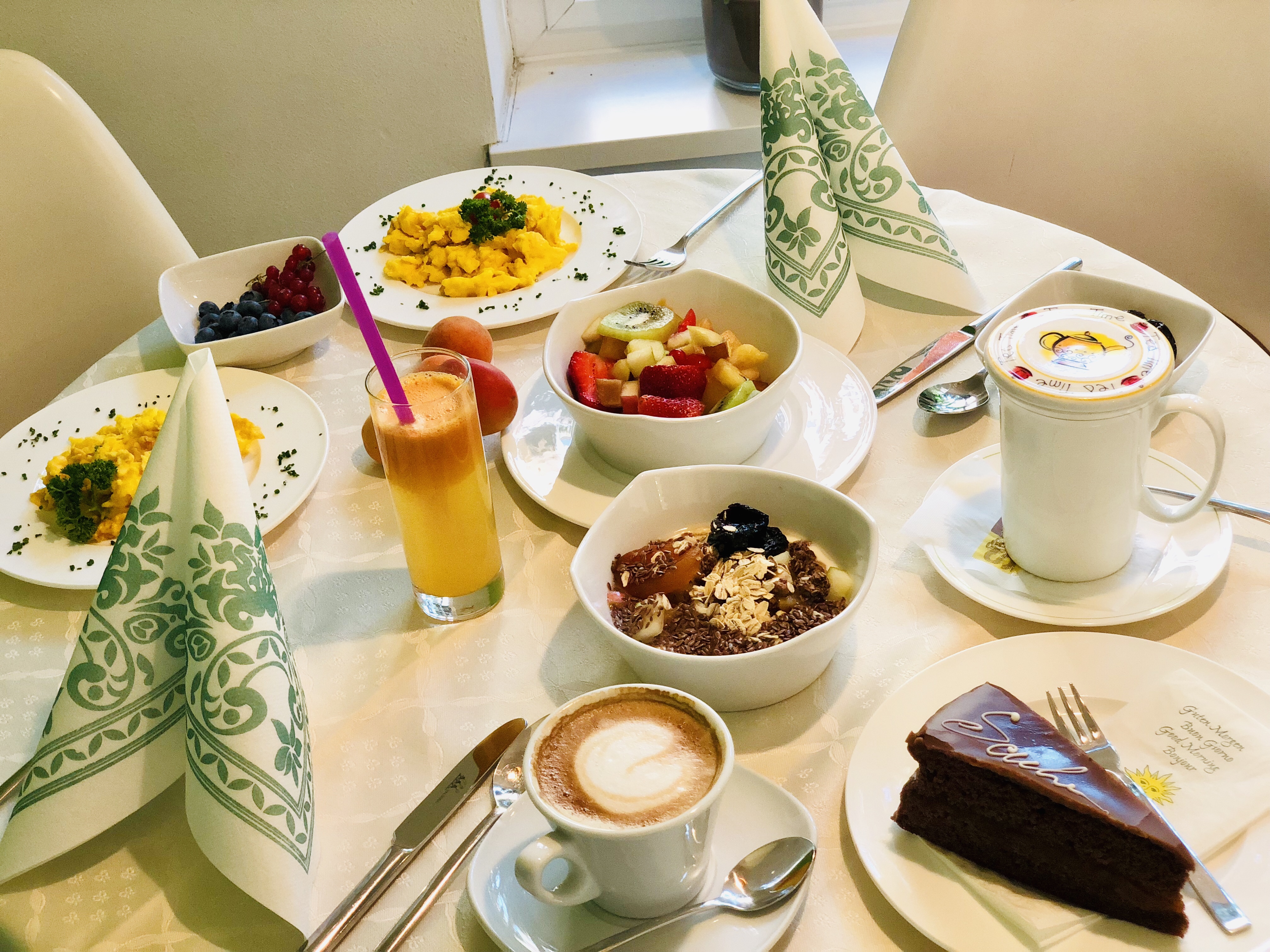Un buffet molto salutare che ho apprezzato tantissimo, con diverse tipologie di pane fresco, spremute, frutta e salumi locali di prestigio.