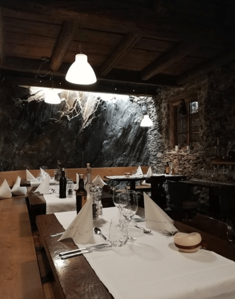 Un menù stagionale sapientemente equilibrato tra mondo italiano e mondo tedesco (e non solo…) con ingredienti freschi e sempre del territorio, cucinati con maestria da Robert in persona; ottima carta dei vini.