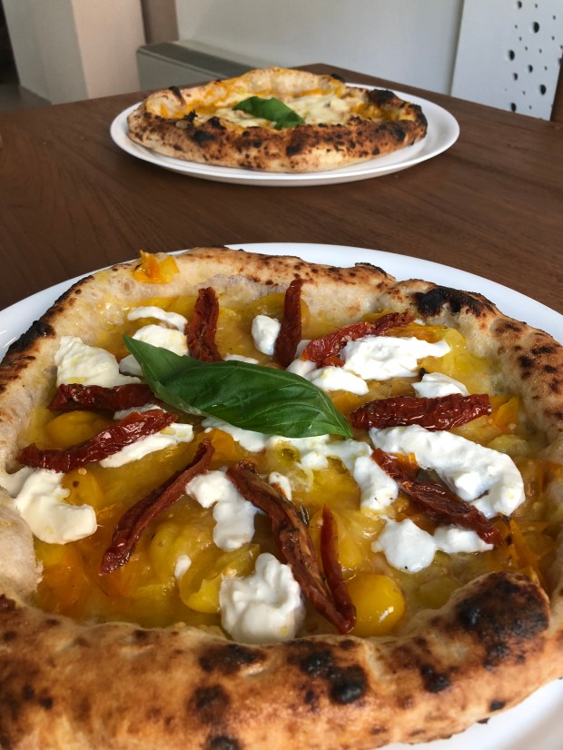 A volte i migliori fiori nascono dal cemento e dove meno te l’aspetti, così la margherita più profumata nasce in un prato dell’hinterland, lontana dai riflettori del centro milanese. Napoli chiama, 081 (prefisso napoletano) risponde, ma a Melegnano, dove crea petali di gusto dal solo “m’ama”. Dammi mille fette, poi altre cento, poi altre mille, poi per la seconda volta cento, poi altre mille ancora, poi cento: anche Catullo avrebbe dedicato una poesia alla pizza napoletana di questo che mette tutti d’accordo, persino me che da siciliana ho sempre poco apprezzato la tipologia di cottura (anzi “non cottura”) della tradizione partenopea. Un piccolo grande impasto d’amore, oltre 250 gr, dalle 24 alle 36 ore di lievitazione, di farine pregiate e ingredienti di altissima qualità direttamente da Napoli (dal Pomodoro San Marzano DOP, al fior latte di Agerola, dai pomodori gialli di Corbara alla salsiccia di maialino nero di Caserta ai capperi di Salina, Bufala Campana di Battipaglia) ed erbe e ortaggi (come la zucca) del giardino di famiglia, incorniciati da un bordo alto e croccante. Pizze della tradizione napoletana affiancate a proposte stagionali rivisitate secondo i dogmi della cucina stellata, da cui proviene il fondatore nonché cuoco d’alta cucina, Francesco Saggese, che con l’aiuto del fratello Davide e della moglie, ha dato vita ad un’esplosione di sapori partenopei autentici in un ambiente allegro e originale.