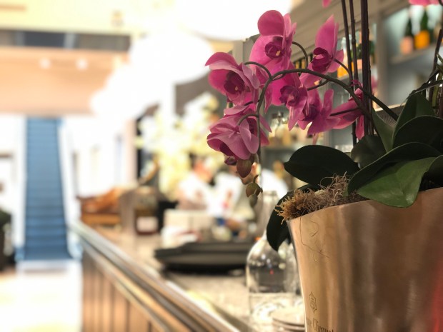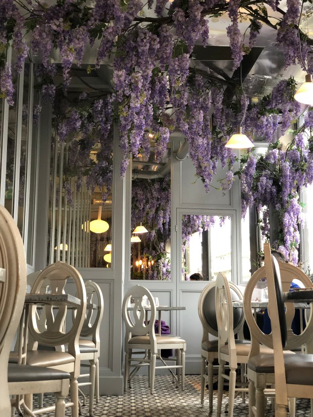 Situato al secondo piano dell’iconico grande magazzino Selfridges in Oxford Street, Aubaine, ristorante francese iconico. Morbidi pannelli grigi e enormi specchi foderano le pareti. Tavoli in marmo riempiono lo spazio più piccolo e stretto del ristorante. Ma è tutto ciò che sta su che attira la maggior parte delle persone: i glicini coprono la maggior parte del soffitto e cadono lungo gli angoli della stanza. Si formano grandi bei grappoli che si riflettono negli specchi, per un effetto giardino botanico stupendo.