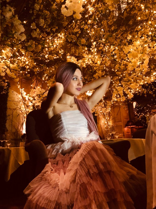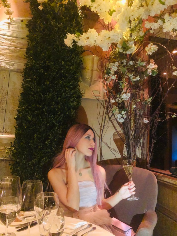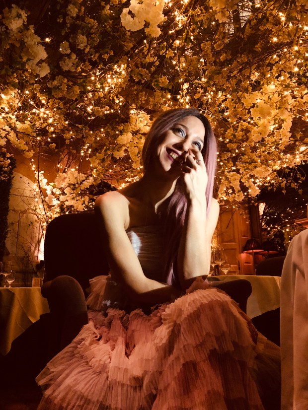 Per il nostro romantico San Valentino, ci è stata riservata la sala più bella, il famoso giardino d’inverno con camino e soffitto di fiori, dove il tetto di vetro si apre nei giorni d’estate, luogo speciale e lussureggiante.