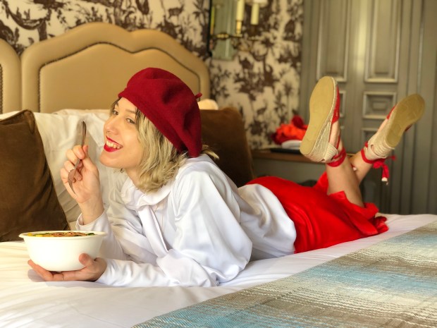 Il mio primo pensiero entrando nel dolce e accogliente hotel del XVIII secolo è che ricorda le scene del mio film d’infanzia preferito, Alice nel Paese delle Meraviglie, con i suoi toni color pastello, i mobili eccentrici, le torte di ceramica e poltrone oversize.