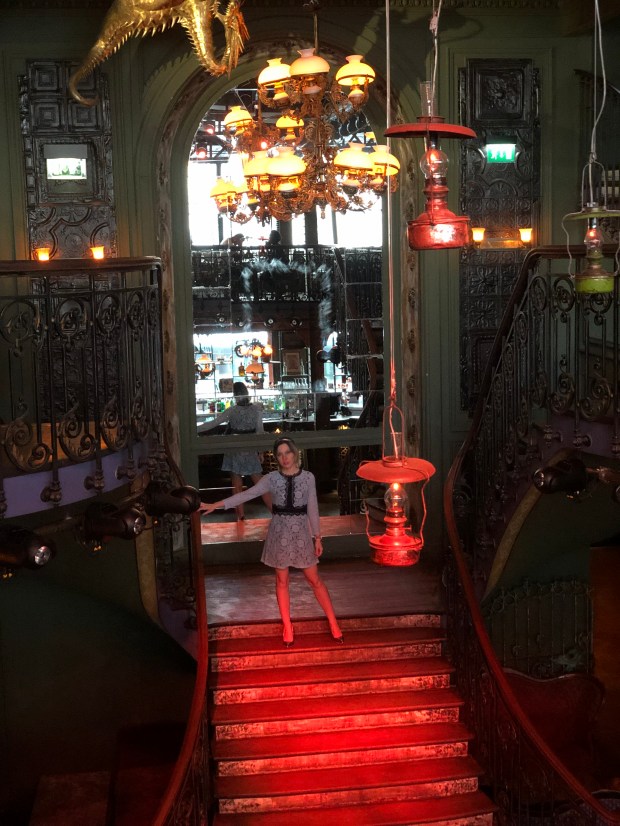 Questo splendido edificio tutto in mattoni rossi ed edera, scontrandosi nella piccola rue de Douai, ci ha affascinato tantissimo. Su ogni piano, un ambiente con una propria identità, tra cui la raffinatezza e l’arredamento di stile. Mix di verde e blu, sedie in rattan, edera selvatica, fiori ovunque, barattoli che celano molti tesori, tappezzerie floreali, bar retroilluminato in marmo giallo di Siena, pareti intonacate con vecchie lastre … per non parlare, ovviamente, dell’ultimo piano, con il tetto in vetro che bagna di luce l’ambiente e lo rende simile ad un meraviglioso giardino dell’Eden.