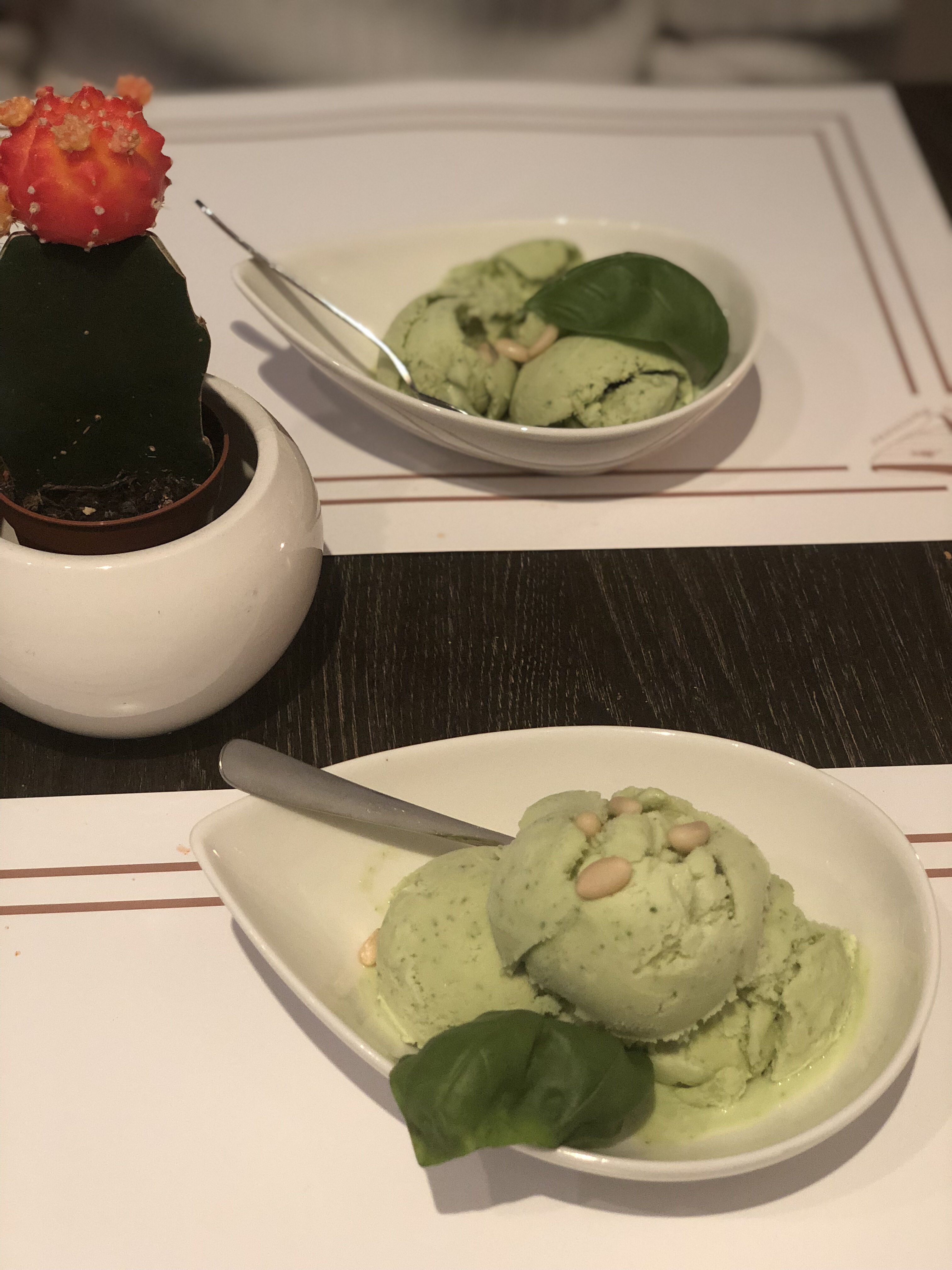 Immancabile specialità è il loro gelato al basilico che ha davvero solleticato la mia fantasia. Fresco, pulito e quasi un po’ floreale, ha davvero aiutato a pulire il palato.