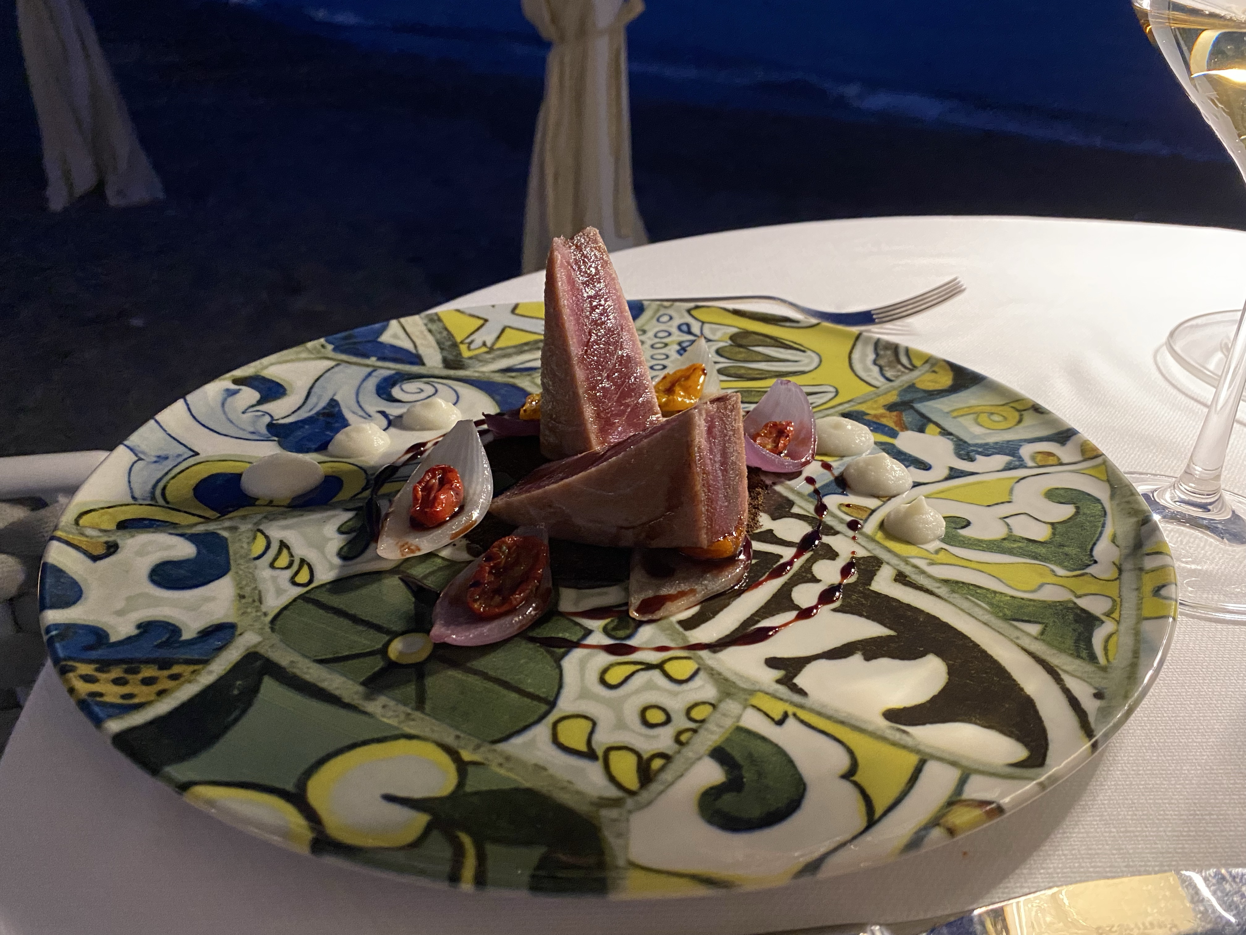 Portovenere è conosciuta per le loro cozze coltivate, quindi abbiamo avuto più della nostra giusta quota, fritti, malconci e stufati. Ma il piatto che noi amiamo da sempre è il loro tonno, con le fragole. Da perderci la testa.