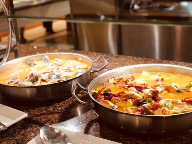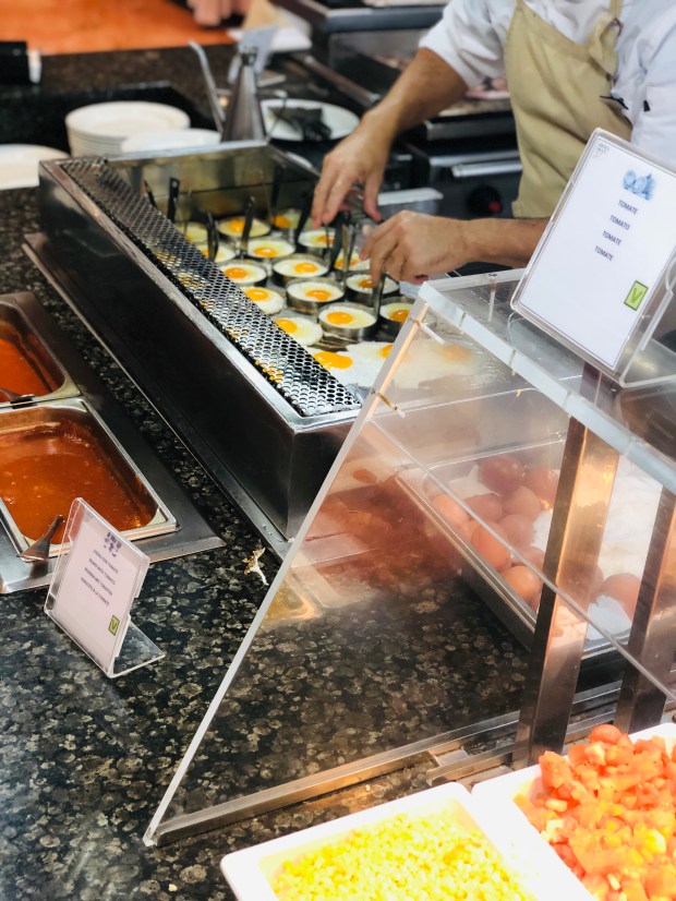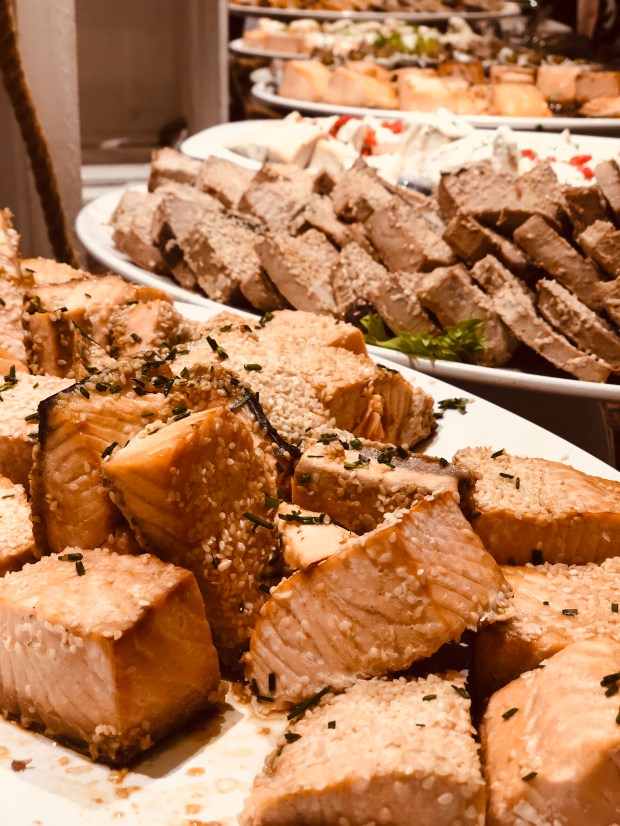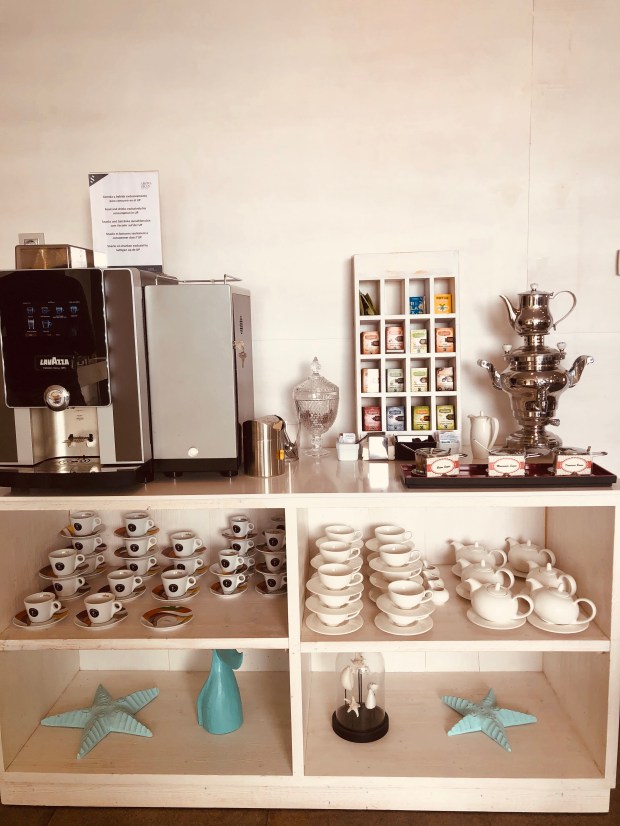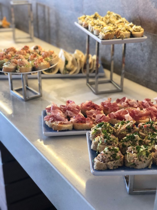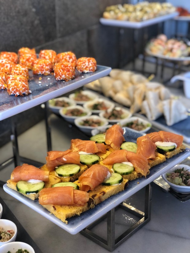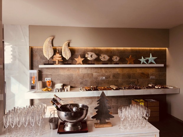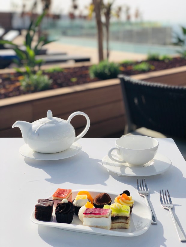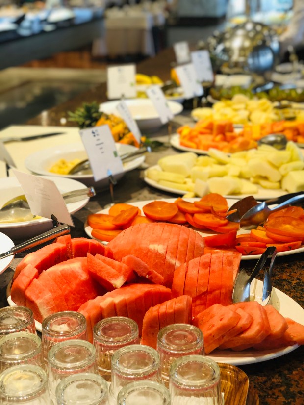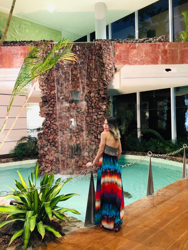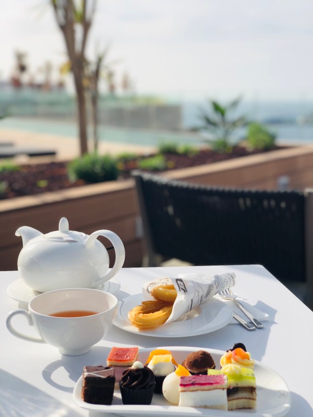 La nuova opzione Up è il fiore all’occhiello di questo hotel. Recentemente inserita, è una tipologia di upgrade che dà la possibilità di accesso al paradiso, situato all’ultimo piano, il 7 dove vi è un’immensa terrazza panoramica con piscina infinita, idromassaggio infiniti, sdraio, bar con open bar illimitato (e di altissima qualità infatti con un paio di cocktail in Up io e Stefano, noti per non essere astemi, eravamo KO). Una stupenda sala da tea dove poter prendere dei libri di qualsiasi lingua nella libreria riservata agli ospiti o giocare con tantissimi giochi da tavolo offerti (sono riuscita finalmente a battere Ste almeno a dama, prossimo step…scacchi…ma ci vuole troppa intelligenza per farlo, di cui io scarseggio 😀 ) Sempre disponibile, a qualsiasi ora anche champagne, vini, acqua, birra tea caldo, caffè, cappucini, etc. Ogni ora degli chef di alta cucina preparano e servino delle tapas gourmet. Ho amato follemente i finger food con polpa di riccio squisita, i cioccolatini appena fatti (in stile Knam) causa dei miei +3 kg durante questa vacanza e le fajitas con gamberi e guacamole, senza eguali. Churros appena sfornati e cioccolata calda ogni pomeriggio per noi in Up. Una vista mozzafiato da questa terrazza dove abbiamo visto dei tramonti davvero stupendi e romanticissimi.