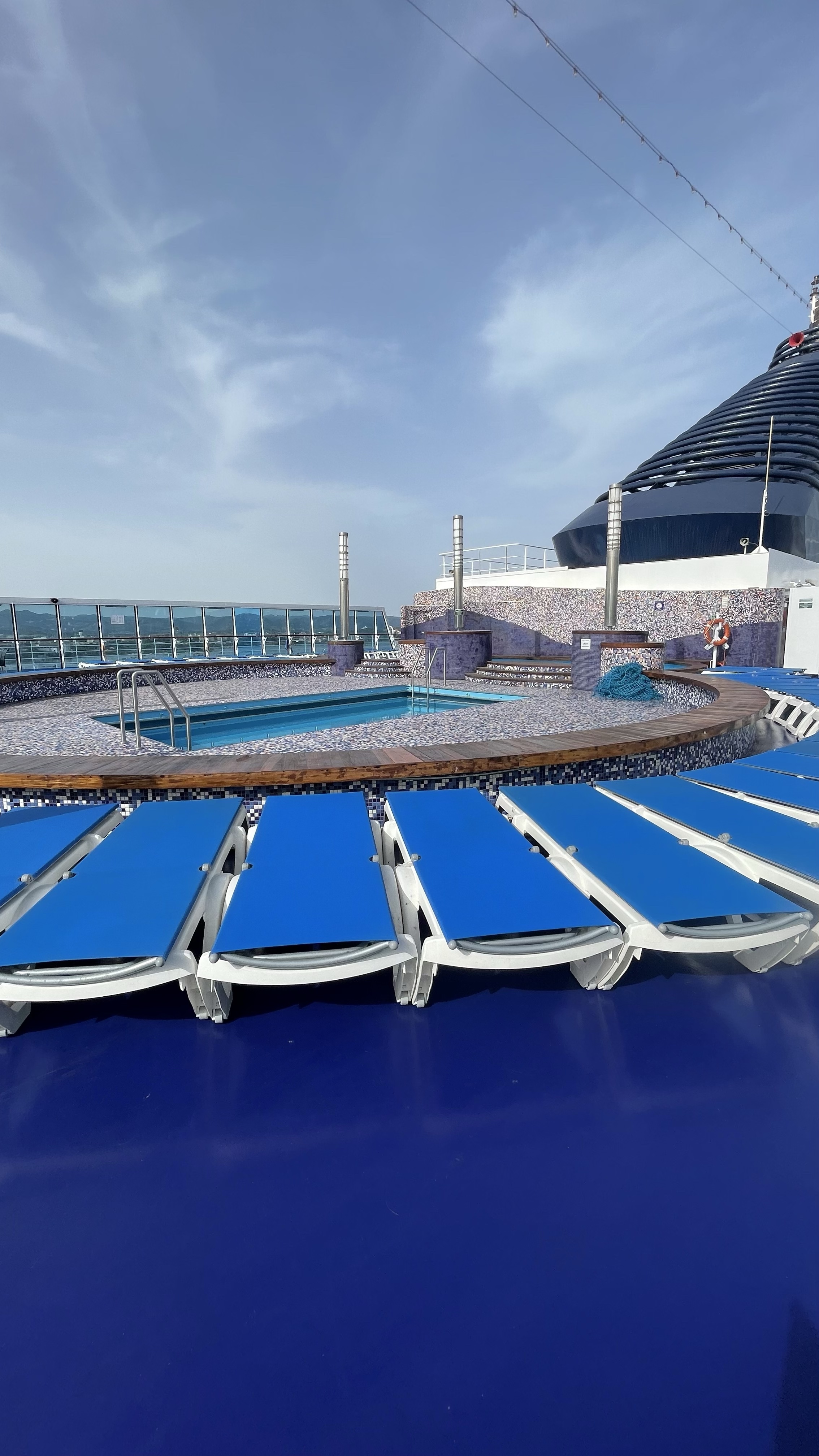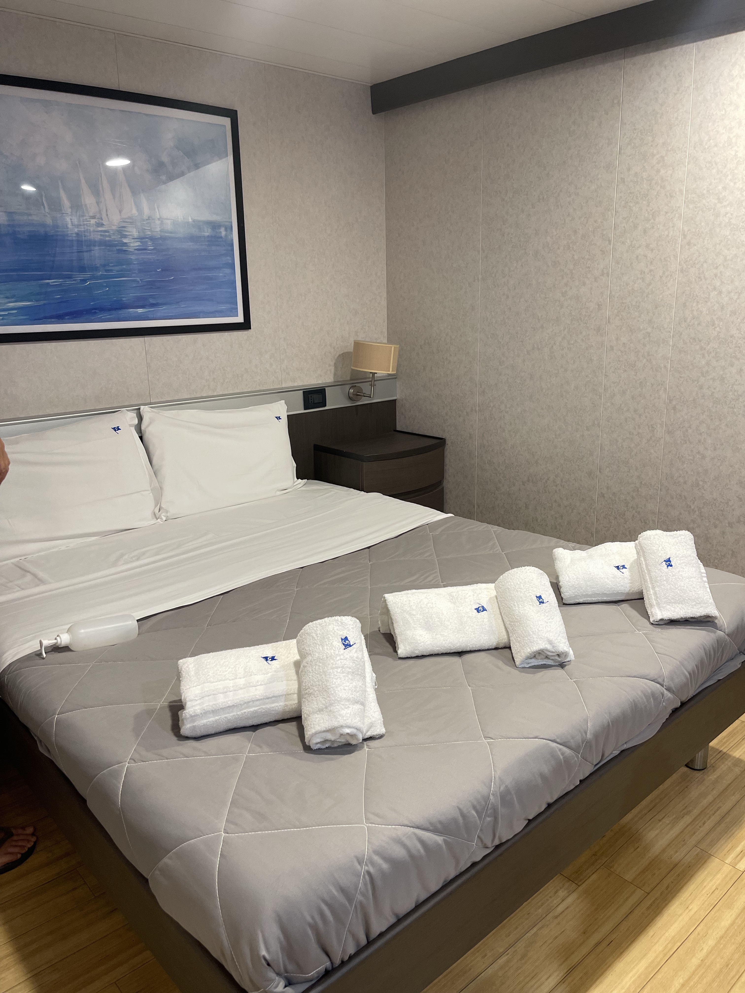 Arrivati con un paio di ore d’anticipo per cenare con tranquillità nel ristorante della nave, appena arrivati, lo staff ci ha accolti calorosamente e fatti sistemare nel miglior modo e più accessibile possibile, avendo la priorità. Abbiamo infatti messo la macchina proprio accanto ad una delle entrate principali, area 7, dove si trovano le suite. Scesi con il minimo indispensabile per la notte, (pannolini e spazzolini praticamente) siamo andati subito nella nostra stupenda suite.