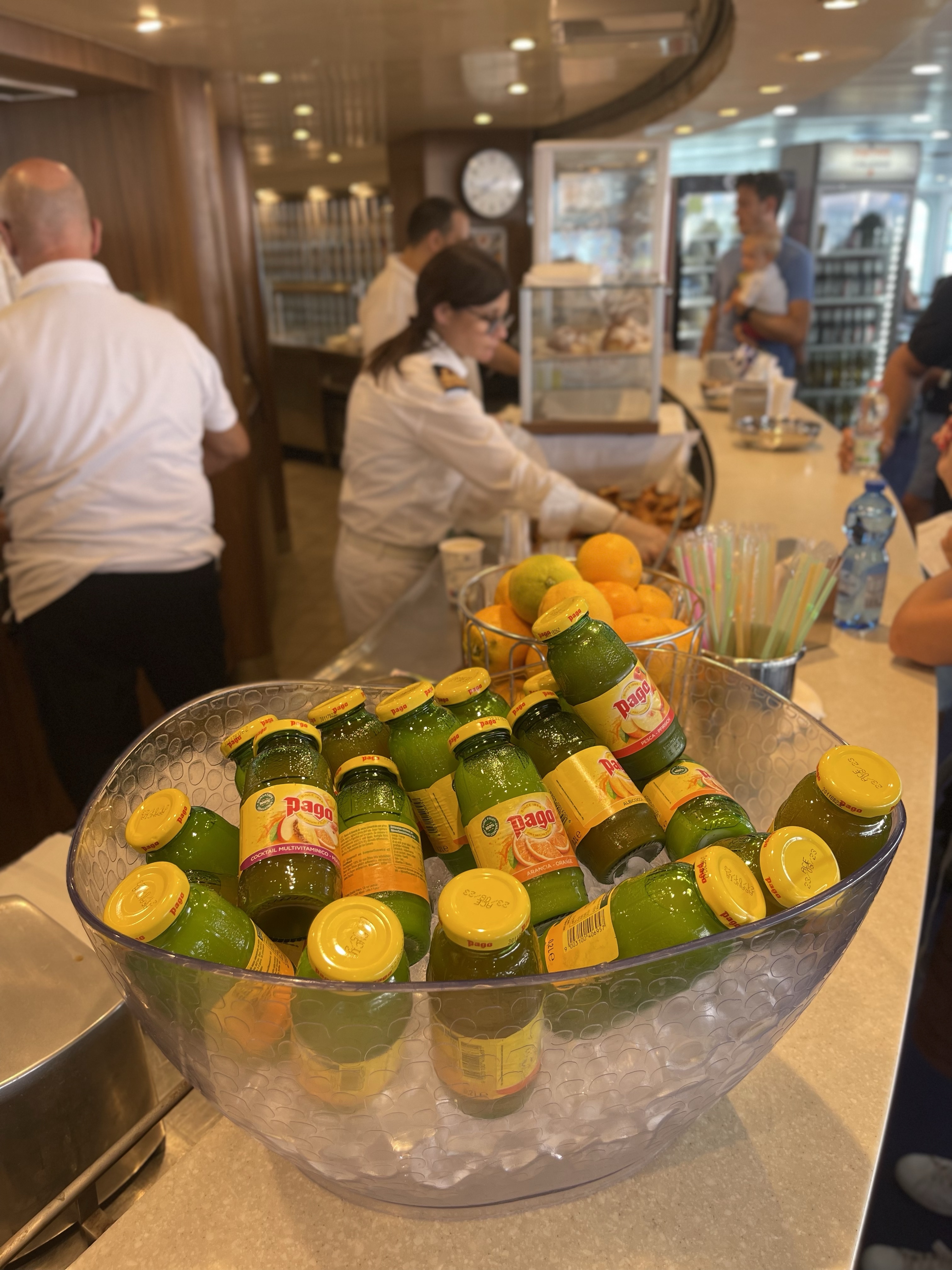Al momento della prenotazione è possibile aggiungere i pasti ad una tariffa scontata rispetto a quella che paghereste a bordo. Noi avevamo colazioni, pranzi e cene al ristorante con la prenotazione premium, ma è possibile acquistare anche delle opzioni più economiche con la colazione e pasti standard, serviti al bar all’aperto vicino la piscina e al ristorante self service.