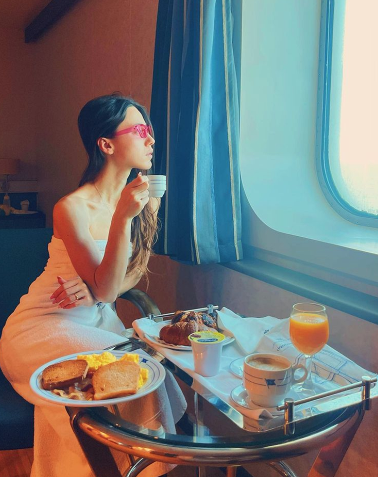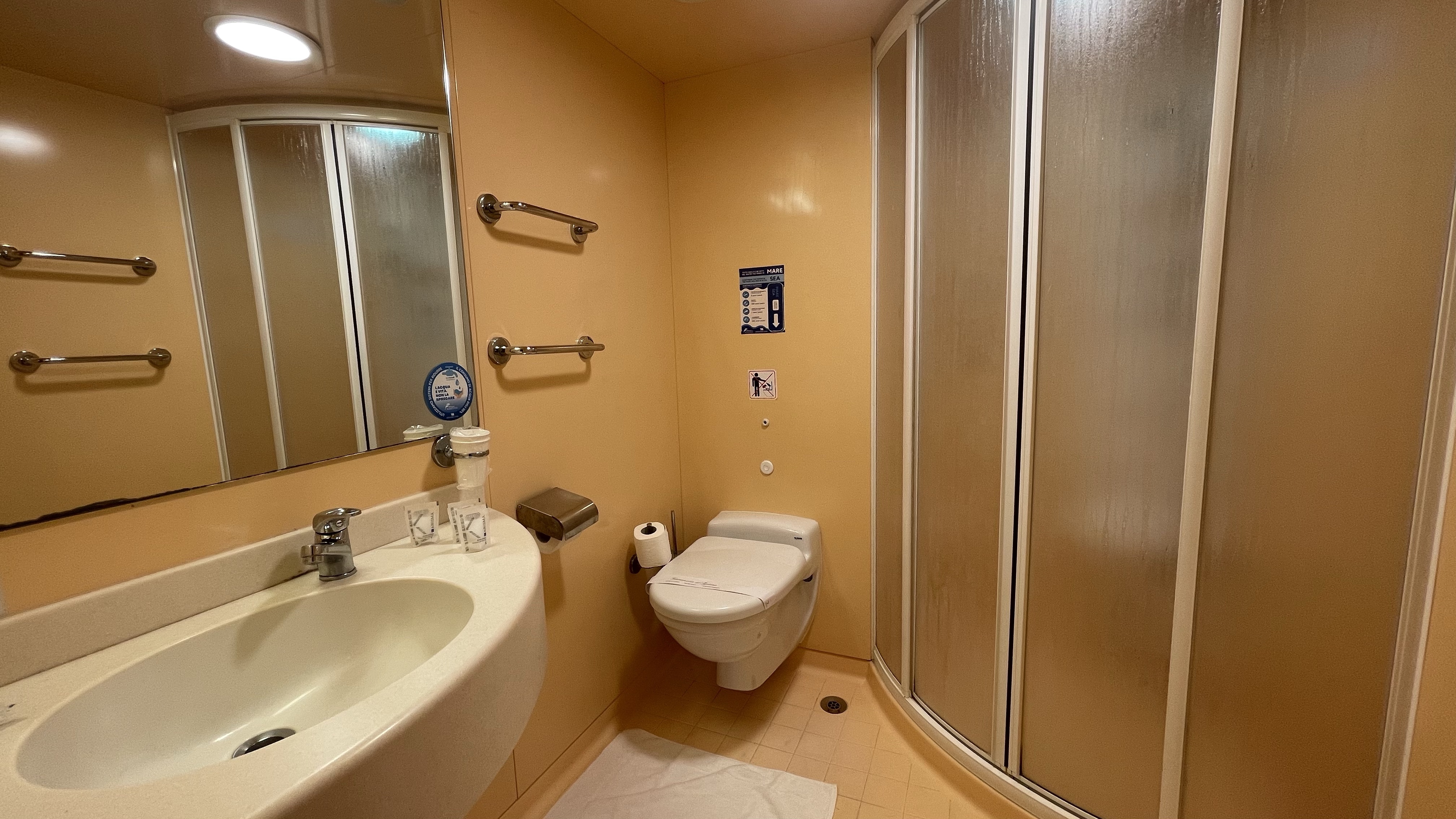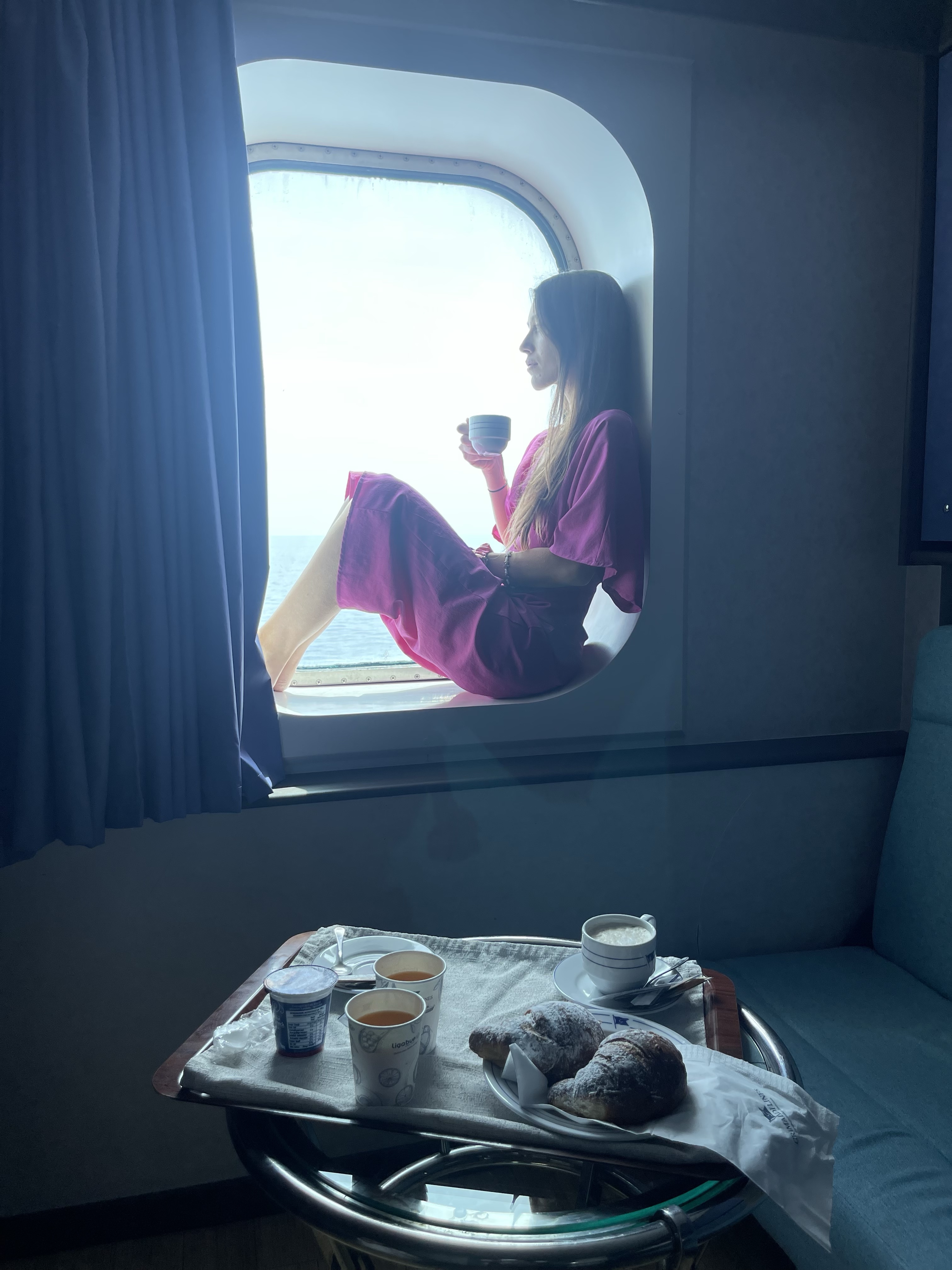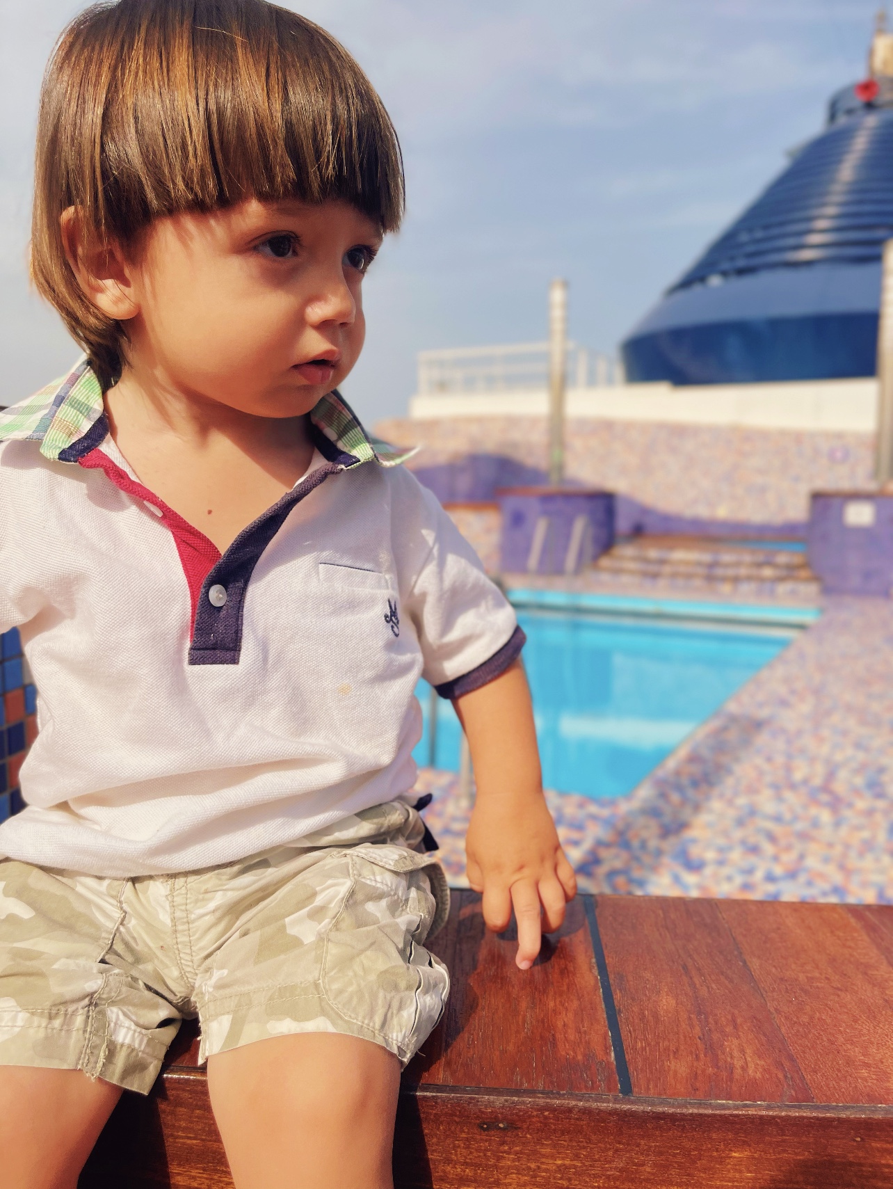 Spesso si pensa che la nave non sia adatta alle famiglie con bimbi piccoli e soprattutto con problemi di difese immunitarie come quelle di Ruggero e che l’infezione sia dietro l’angolo, ma quello che mi ha sorpresa è l’estrema pulizia e sanificazione di tutto, bagno compreso. Pulizia impeccabile, servizi per gli ospiti eccellenti, dalle tre asciugamani per persona, shampoo, saponi e salviette di ogni tipo. Quando si dice il lusso dell’ospitalità. Anche la camera molto spaziosa, finemente arredata e con una vista sul mare molto romantica. Frigobar, armadio enorme, letto comodissimo, tv con tutti i canali e sky. Come stare in un hotel a 5 stelle insomma, ma sul mare.